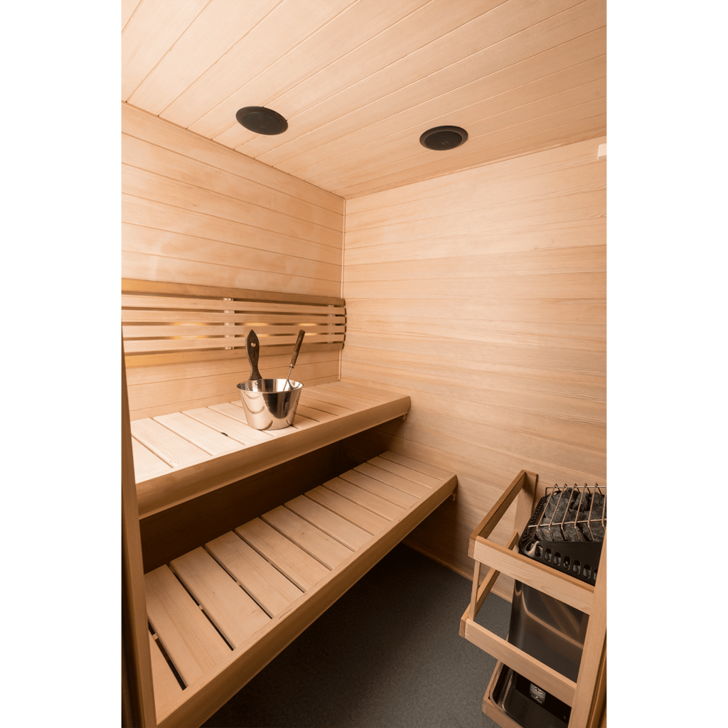 A great sauna experience depends on the quality of the heater, and the Hallmark 55C does not disappoint. Equipped with the Finnish-made Designer-SL2 4.5 kW heater, this sauna delivers precise and efficient heating for both wet and dry sauna sessions.